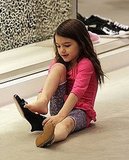 Suri Cruise entertained herself by trying on shoes while out shopping at Holt Renfrew with mom Katie Holmes and a couple friends in Vancouver yesterday. The tot is known to sport kitten heels of her own sometimes, a look that Lauren Conrad thinks only Suri can pull off. Katie checked out the selection as well, but only Suri tested out sparkly pumps for size. The girls are in Canada while Tom continues shooting Mission Impossible: Ghost Protocol in the city. Katie and Suri visited him on set on Friday night amid the news that Katie's History Channel miniseries The Kennedys will not be broadcast in the US. Katie still landed the cover of Elle to help promote the project and in the interview she once again talked up her four-year-old daughter's style sense. There's a chance that The Kennedys will air on another network and it will be shown internationally, though apparently the famous family itself might be behind it being pulled in the first place.